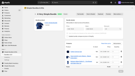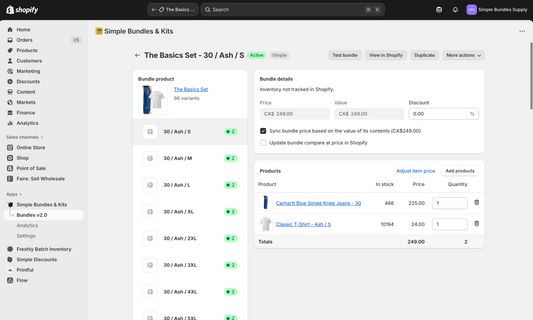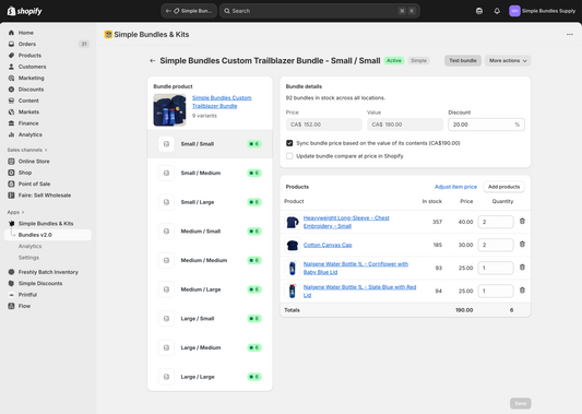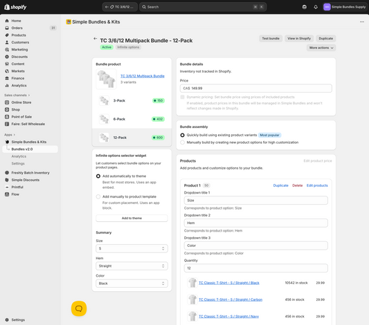 The Simple Bundles builder is recommended for bundles with a fixed set of products or limited bundle variants (does not exceed Shopify's 100 variant and 3 option limit). Learn more